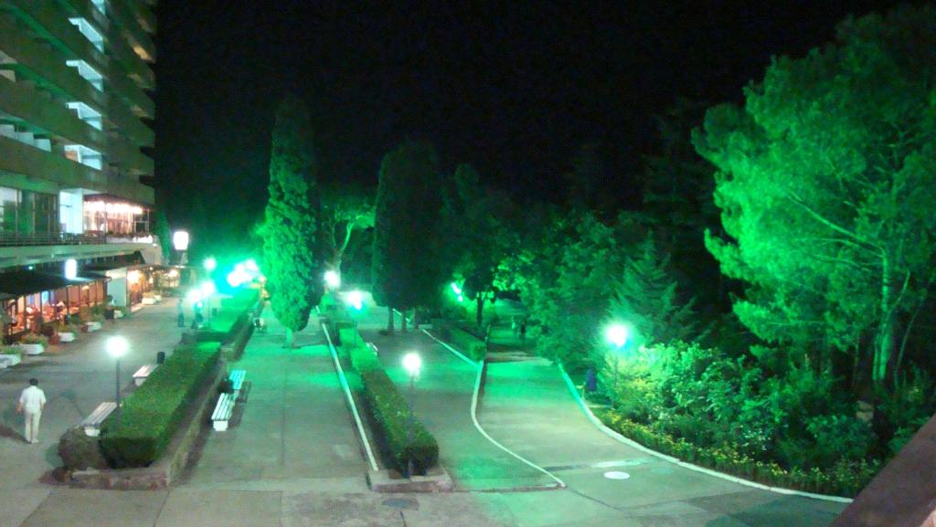 По закрытию курортного сезона в Крыму наша компания разработала и осуществила архитектурную подсветку фасада здания самого известного гостиничного комплекса г.Ялты - "ЯЛТА-ИНТУРИСТ". Проект включает себя освещение светодиодными прожекторами фасада здания и наружной территории отеля. С помощью наших светодиодных светильников рельефный фасад здания стал значительно заметенным издалека, и они изящно подчеркивают архитектурный ансамбль здания. Согласно пожеланиям заказчика, наружная подсветка территории гостиницы освещена прожекторами зеленого цвета свечения.